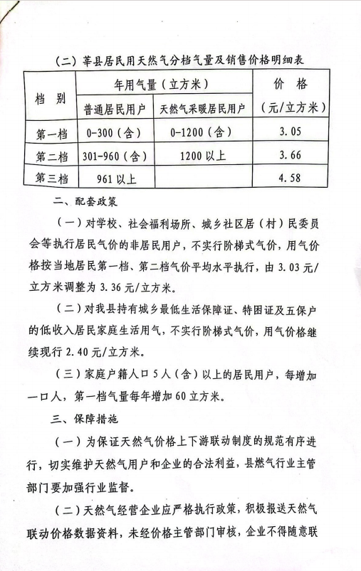 2、燃气销售价格及依据